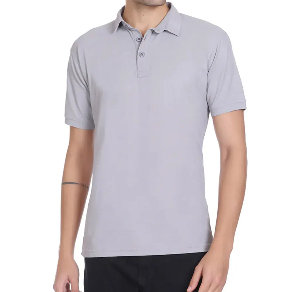 เสื้อโปโลแขนสั้นผู้ชายแบบกำหนดเอง แห้งเร็ว ผ้าฝ้าย 100% พิมพ์ลายตามแบรนด์ของคุณเอง MOQ ต่ำ