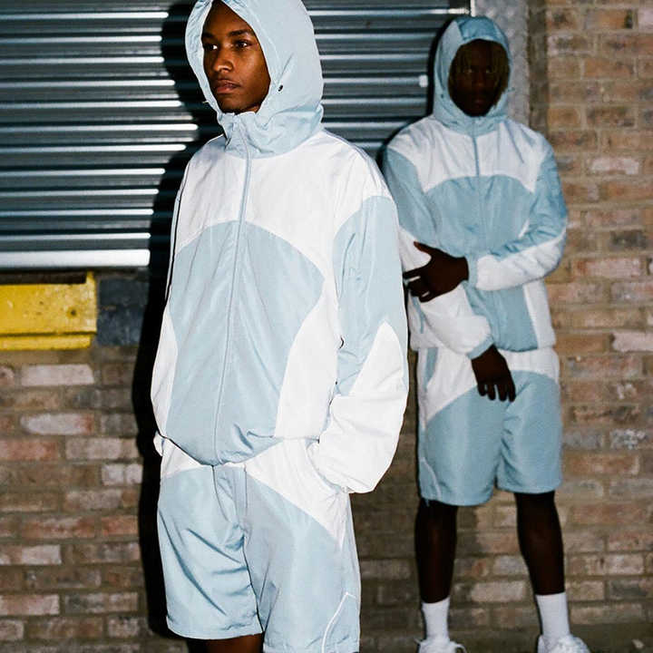 ชุดเซ็ตเสื้อแจ็คเก็ตกันลมและกางเกงขาสั้นผู้ชายแบบกำหนดเอง ชุดเซ็ตเสื้อแจ็คเก็ตกันลมและกางเกงขาสั้นผู้ชาย ไนลอน กางเกงขาสั้นผู้ชาย ชุดเซ็ตเสื้อแจ็คเก็ตกันลม
