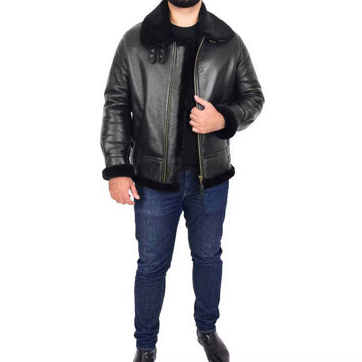 แจ็กเก็ตหนังบอมเบอร์ขนแกะสำหรับผู้ชายแจ็กเก็ตหนังสำหรับนักเที่ยวขนเฟอร์แนวนักบินออกแบบได้ตามต้องการ