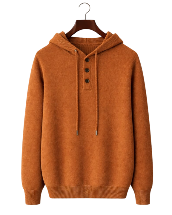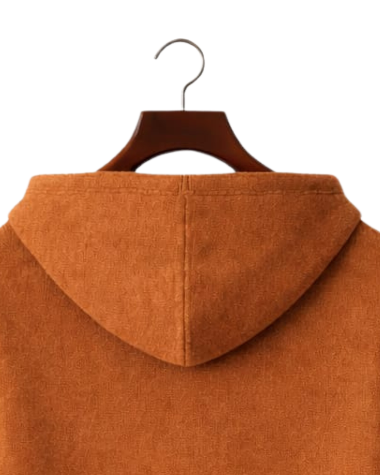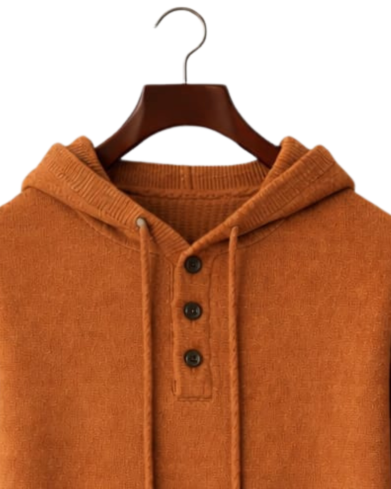 เสื้อฮู้ดไหมพรมสีสนิมสำหรับผู้ชายแบบสั่งทำพิเศษ กระดุมสามเม็ด ผ้าคอตตอนผสมเนื้อนุ่ม อุ่นสบายสำหรับฤดูหนาว สไตล์ลำลองแนวสตรีทแวร์ รับทำโลโก้ตามสั่ง OEM