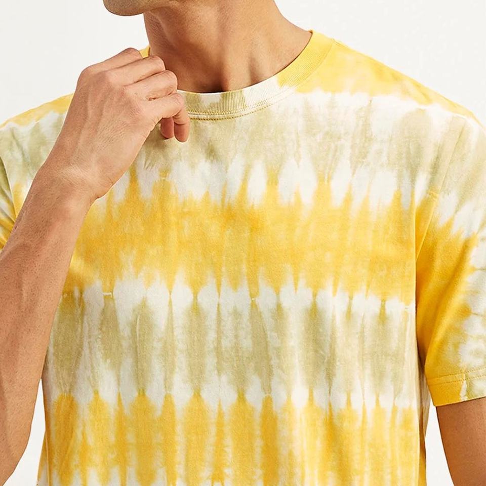 เสื้อยืดมัดย้อมสำหรับผู้ชายเสื้อคอตตอนแขนสั้นผ้าคอตตอนแบบ100% ลายแถบสีเหลืองมะกอกสำหรับฤดูร้อนออกแบบได้ตามต้องการ