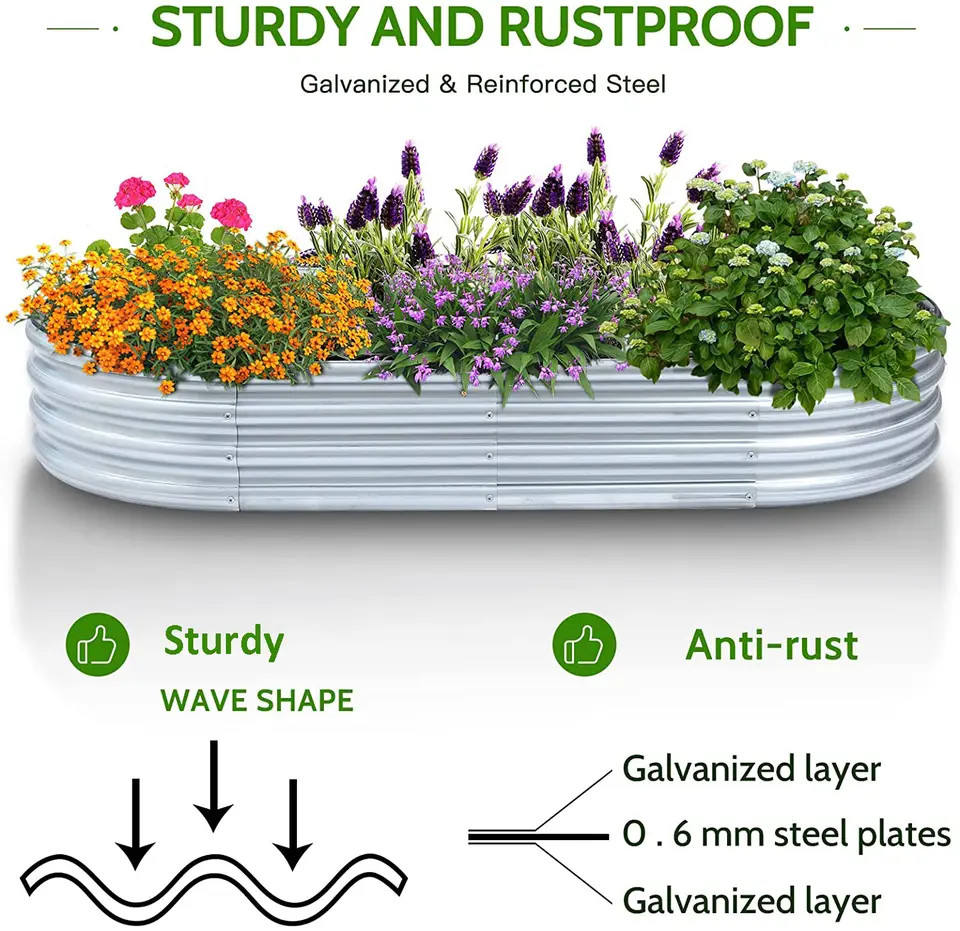Customized Metal Oval Raised Garden Bed Galvanized Steel Power Coated Weatherproof Easy Assembly Outdoor Vegetable Flower OEM