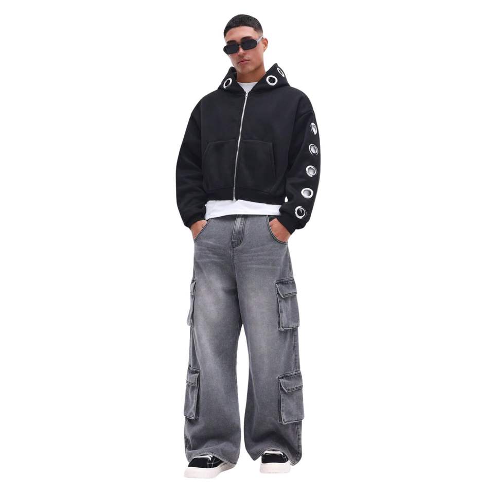 Men Metal Eyelets Hoodies