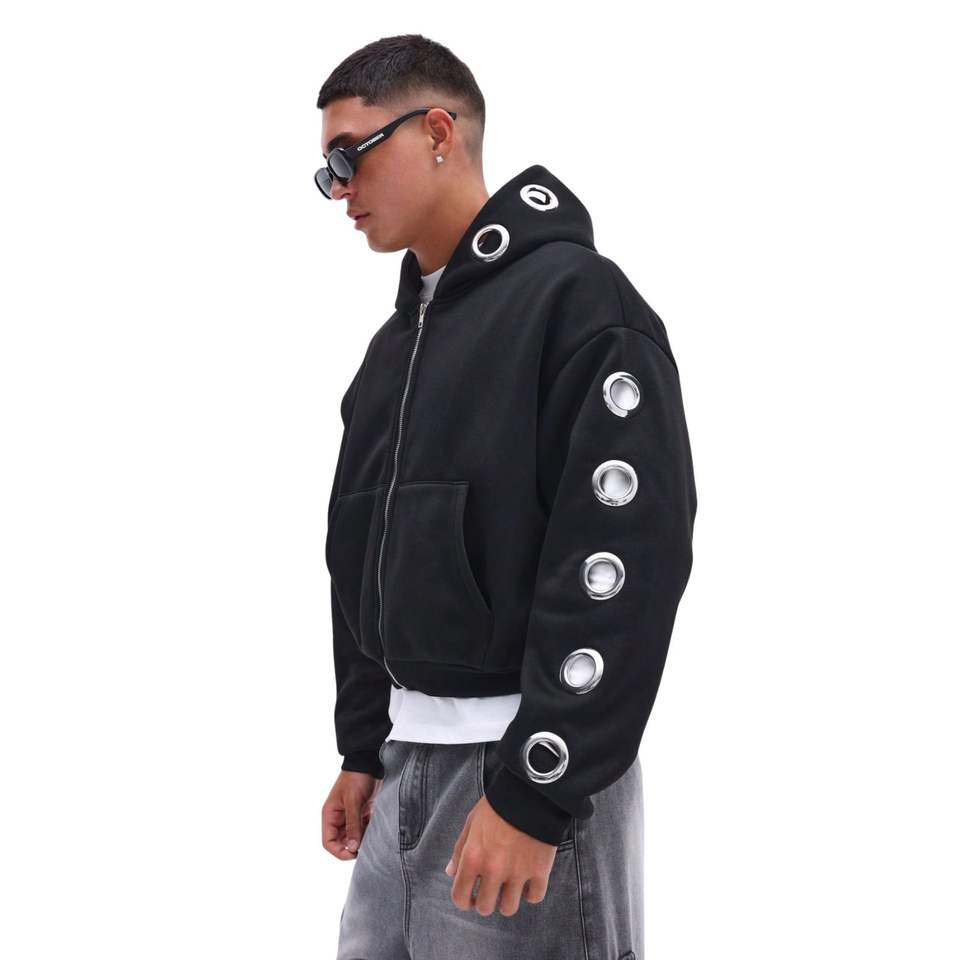 Customized Metal Porous Eyelets Casual Zipper Hoodie Oversized Hardware Metals Hoodies Cotton Thick Stylish Men's Hoodies