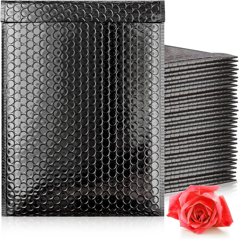 ซองไปรษณีย์กันกระแทกสีดำเมทัลลิกแบบกำหนดเอง เป็นมิตรกับสิ่งแวดล้อม รีไซเคิลได้ พิมพ์ลายฟอยล์สีทอง สำหรับจัดส่งเสื้อผ้า