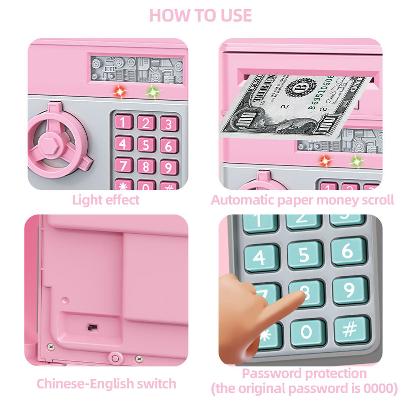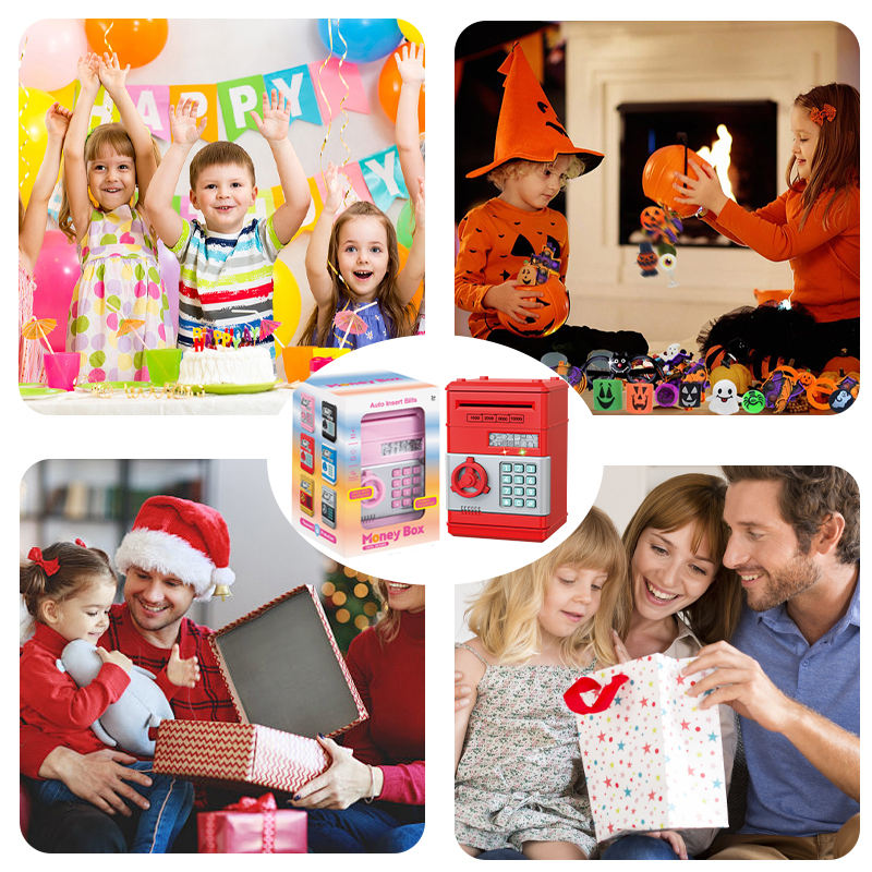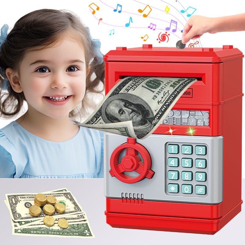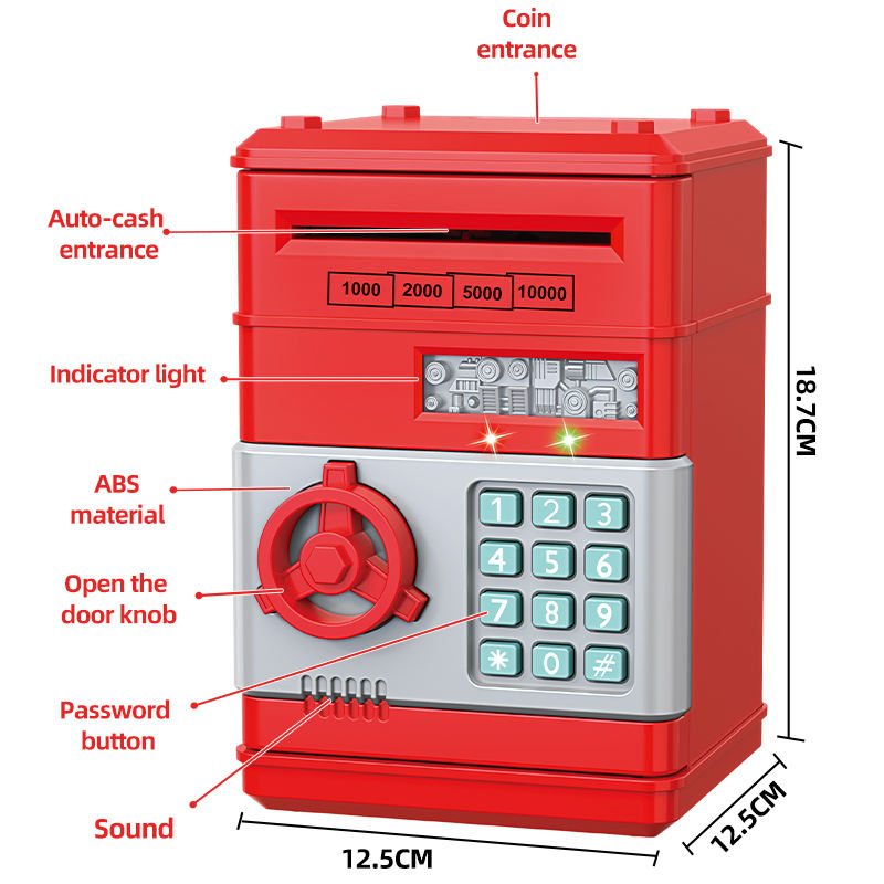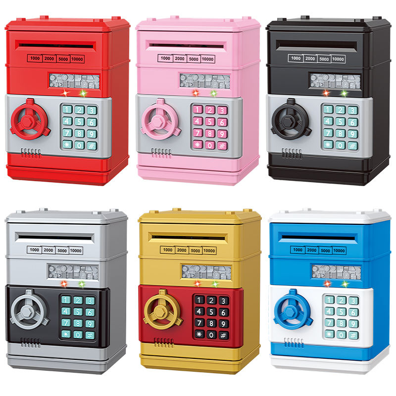 กระปุกออมสิน ATM ขนาดเล็กแบบกำหนดเอง กล่องออมเงินอิเล็กทรอนิกส์สำหรับเด็ก ทำจากกระดาษและโลหะ สามารถปรับแต่งได้ กระปุกออมสินเหรียญขนาดจิ๋ว ATM