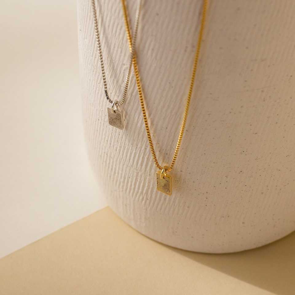 สร้อยคอป้ายลายนิ้วมือขนาดเล็กที่กำหนดเองได้โซ่ทองเหลืองชุบทอง14K น่ารักสำหรับวันครบรอบสร้อยคอทองเหลืองชุบทอง
