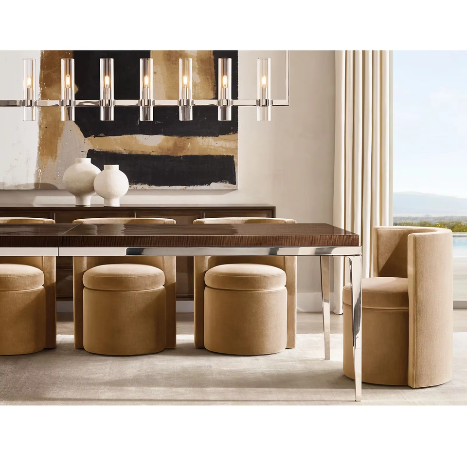 โคมระย้าเหล็กเชิงเส้นที่กำหนดเองแบบมินิมอลลิสต์จี้แก้วที่ทันสมัยห้องนั่งเล่นห้องครัวเกาะวิลล่าโรงแรมล็อบบี้ในร่ม