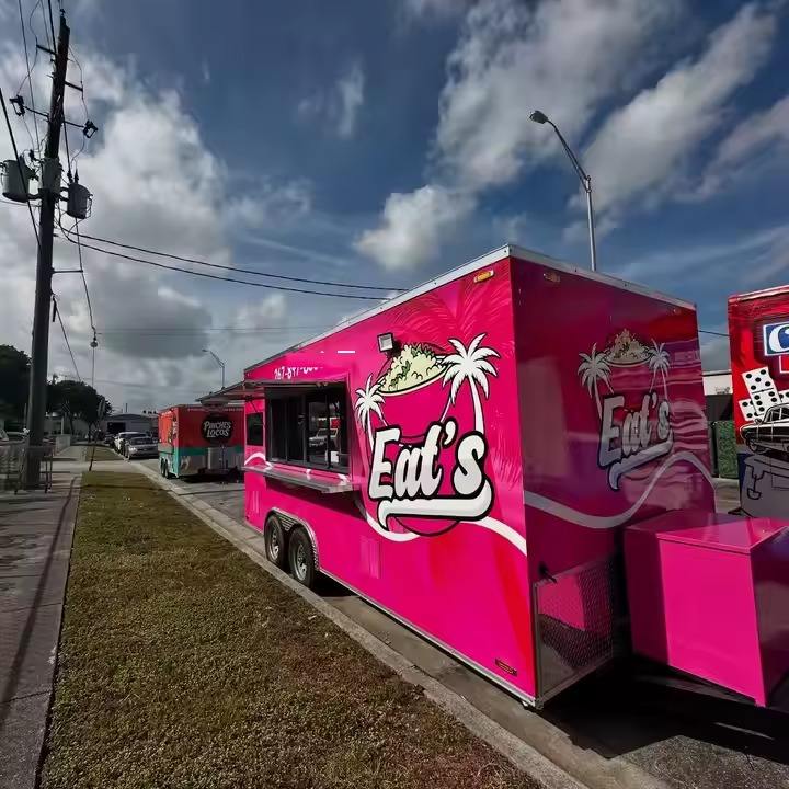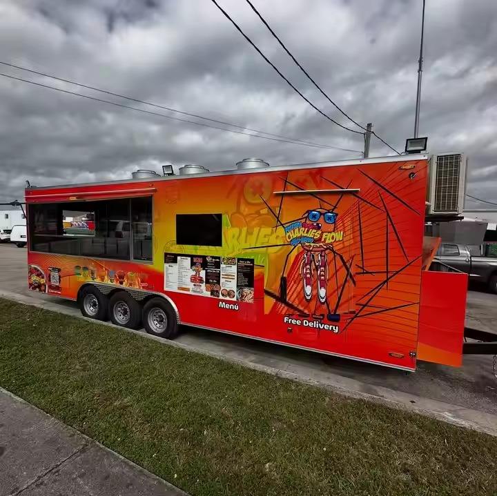 รถเทรลเลอร์ขายอาหารเคลื่อนที่สำหรับขายอาหารจานด่วนรถเข็นขายอาหารในครัวแบบมีอุปกรณ์ครบครันออกแบบได้ตามต้องการ