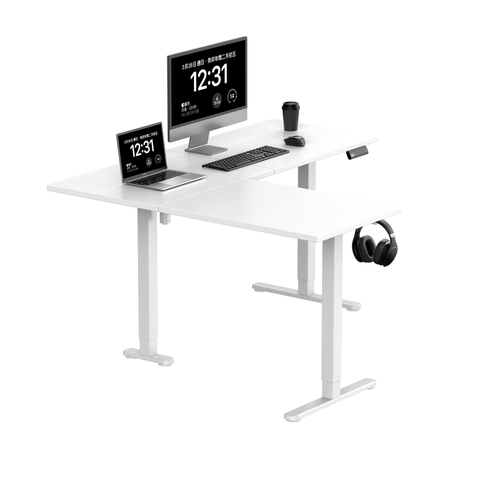 Customized Single Motor 3-Stage Electric Height Adjustment (73-116cm) L-Shaped Modern Convertible Metal Desk Office Desk