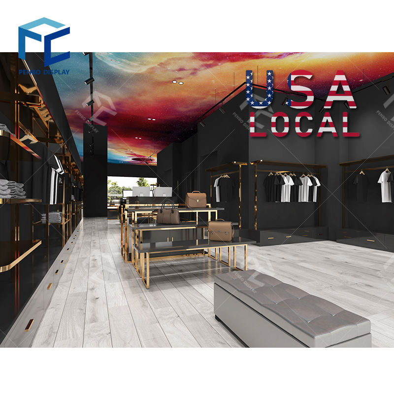 ชั้นวางโชว์เสื้อผ้าของผู้ชายแบบปรับแต่งได้ทันสมัยดีไซน์แบบเคาน์เตอร์เฟอร์นิเจอร์