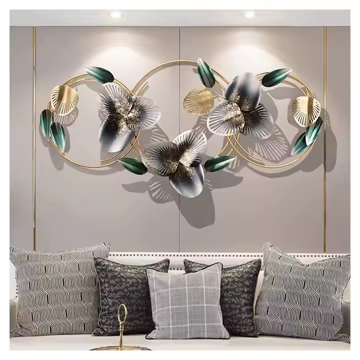 งานศิลปะติดผนังรูปใบไม้โลหะทันสมัยแบบกำหนดเอง พร้อมฐานรองผ้าใบ ดีไซน์ดอกไม้กรอบทอง ทนทาน สำหรับตกแต่งบ้าน