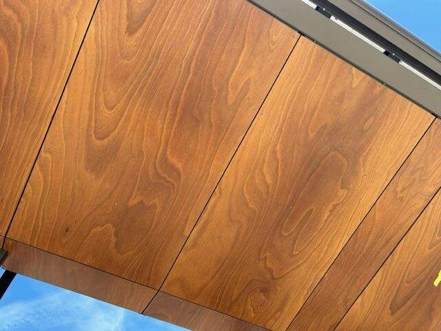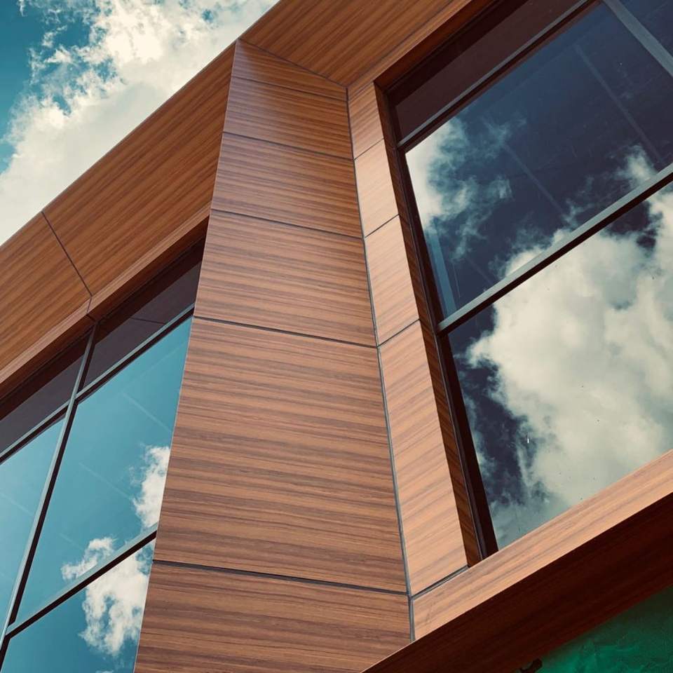 แผ่นคอมโพสิตอลูมิเนียมลายไม้สมัยใหม่แบบกำหนดเอง ป้องกันไฟฟ้าสถิต ทนไฟ (A2/B1) รับประกัน 20 ปี ติดตั้งฟรี ป้องกันรังสียูวี