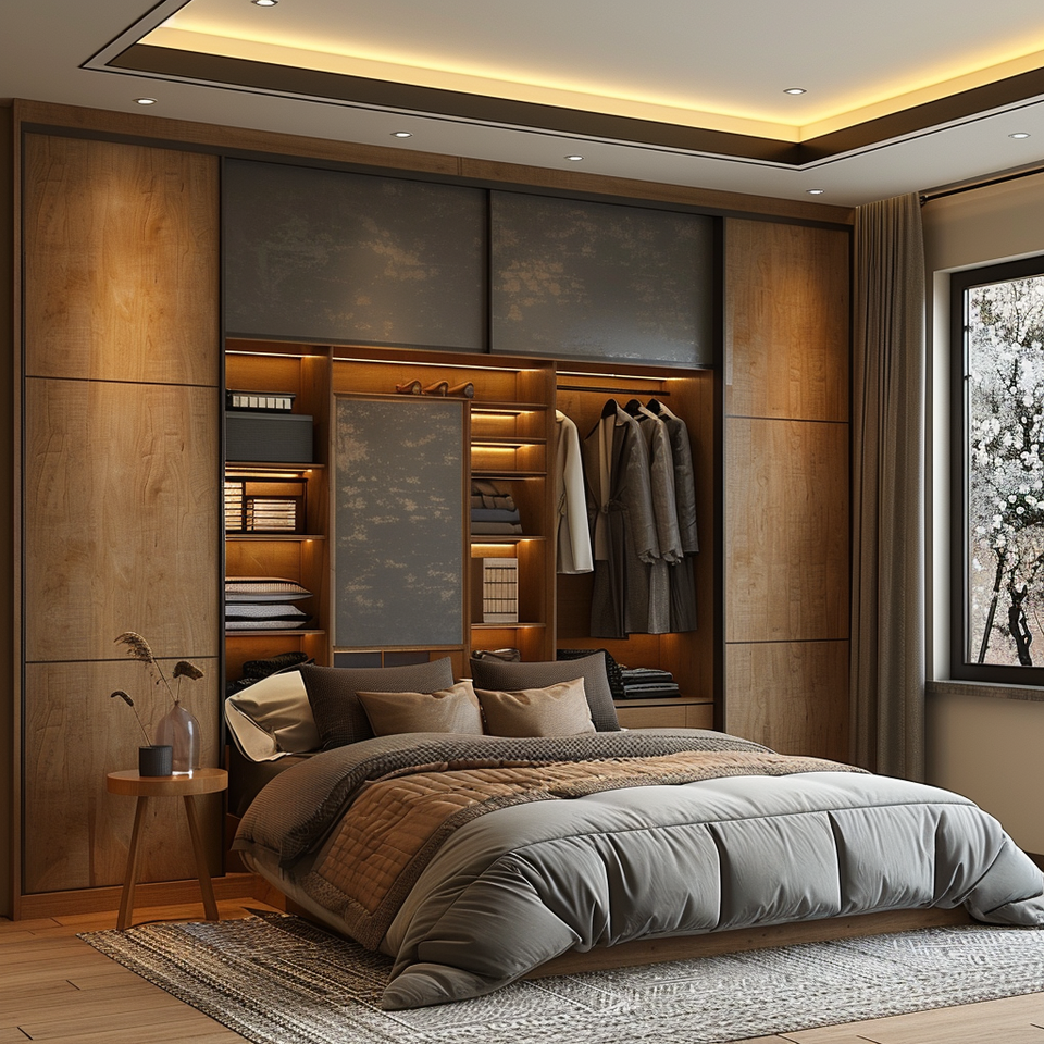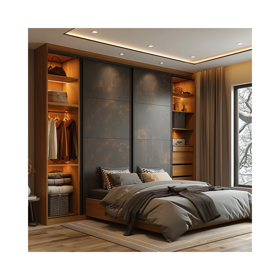 ตู้เสื้อผ้าตู้ไม้สไตล์โมเดิร์นปรับแต่งได้ออกแบบพื้นที่เตียงสีเทาสำหรับเฟอร์นิเจอร์ในบ้านห้องนอน