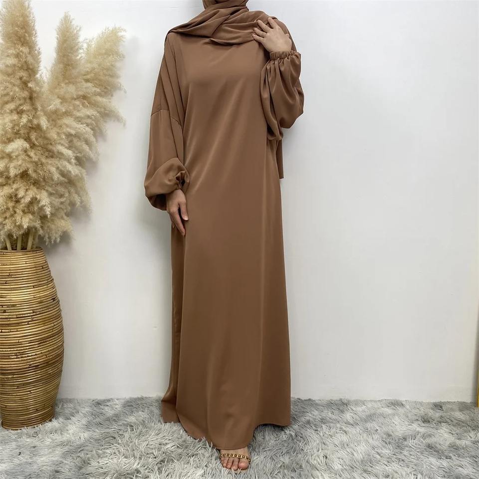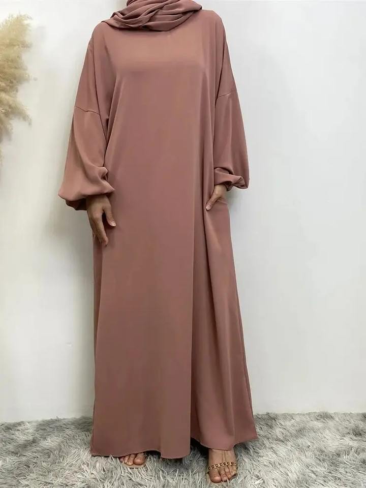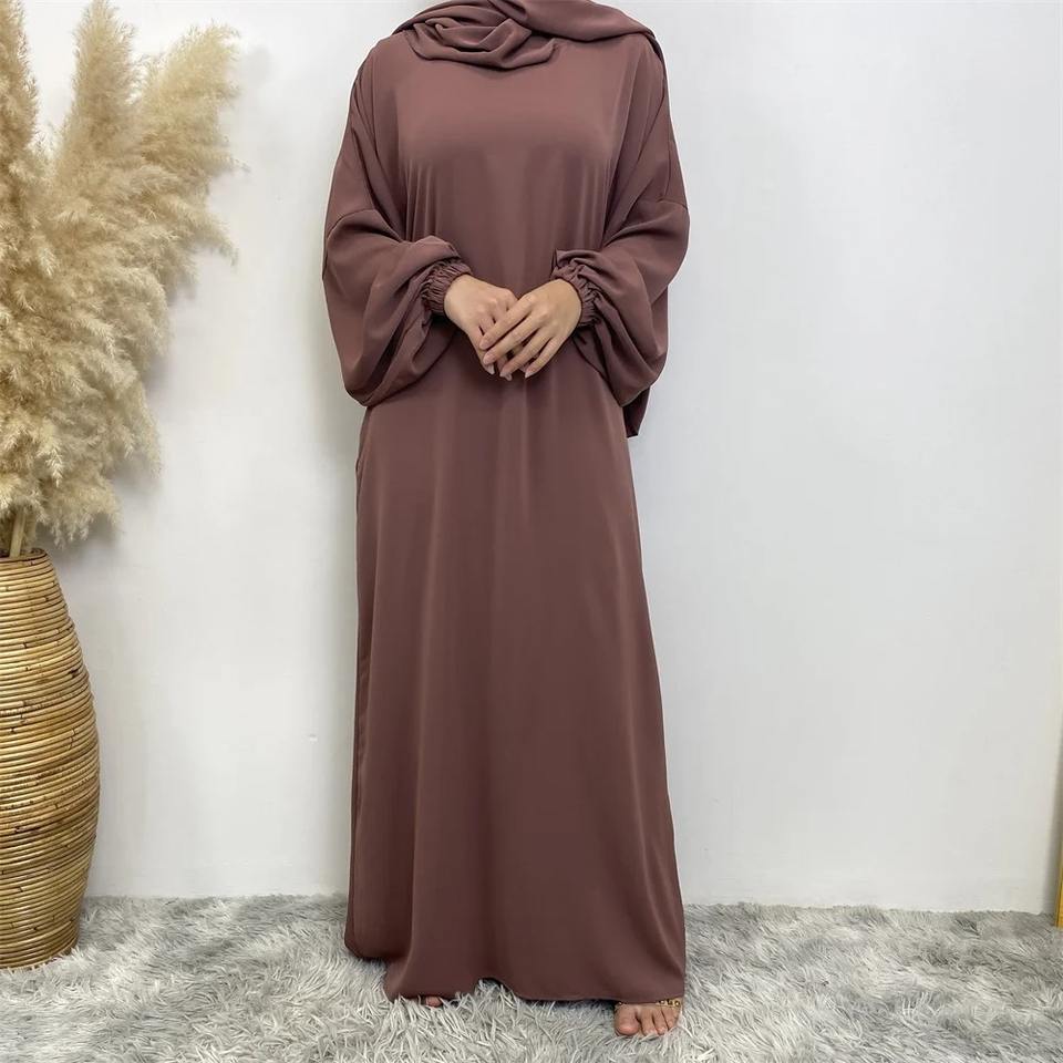 ชุดอาบายะห์ทรงหลวม แขนยาว ปลายกระโปรงบาน คอเหลี่ยม ผ้าโพลีเอสเตอร์ระบายอากาศได้ดี แบบเรียบง่าย สไตล์มุสลิม สำหรับผู้หญิง ช่วงรอมฎอน