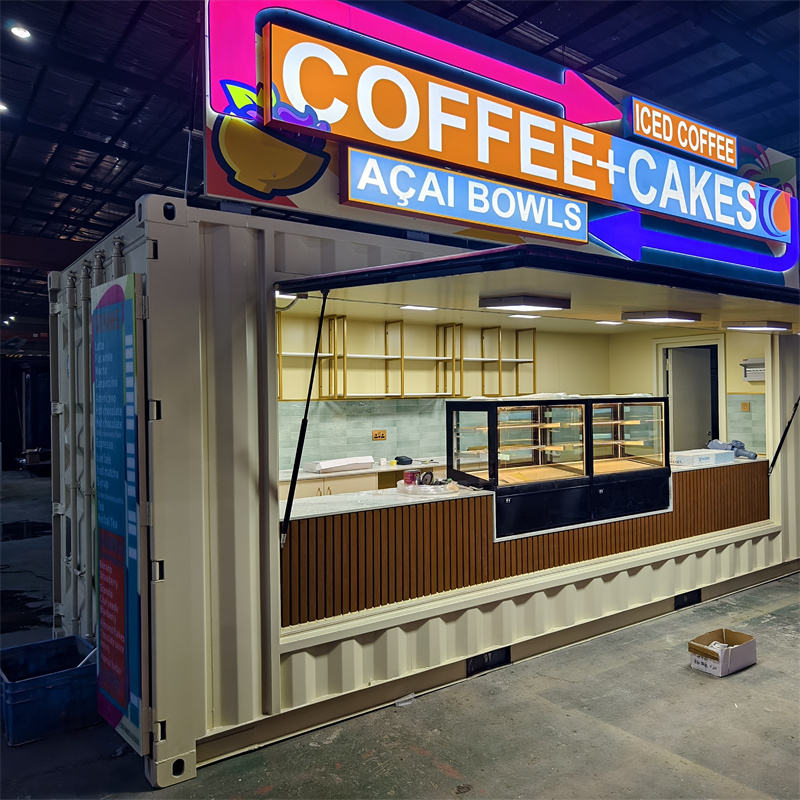 บ้านคอนเทนเนอร์แบบโมดูลปรับแต่งได้ ขนาด 20GP 40HQ เป็นมิตรกับสิ่งแวดล้อม สร้างเร็ว เคลื่อนย้ายสะดวก เหมาะสำหรับร้านกาแฟ ร้านอาหารริมทาง และใช้งานกลางแจ้ง
