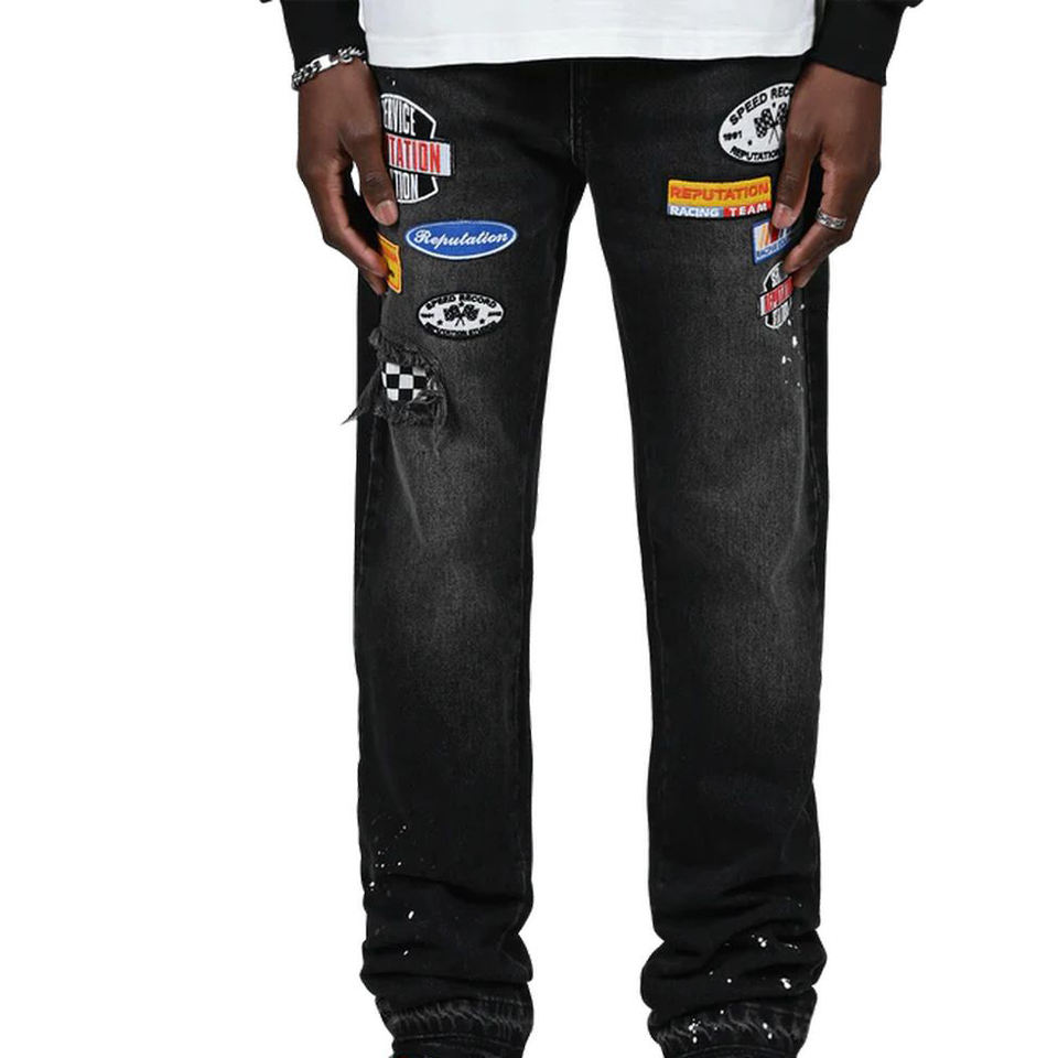 กางเกงยีนส์สำหรับผู้ชายกางเกงยีนส์สำหรับแข่งรถจักรยานยนต์ออฟโรดออกแบบโลโก้ได้ตามต้องการ