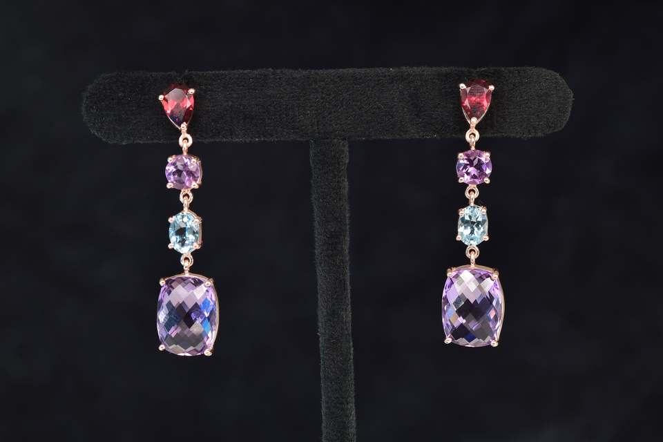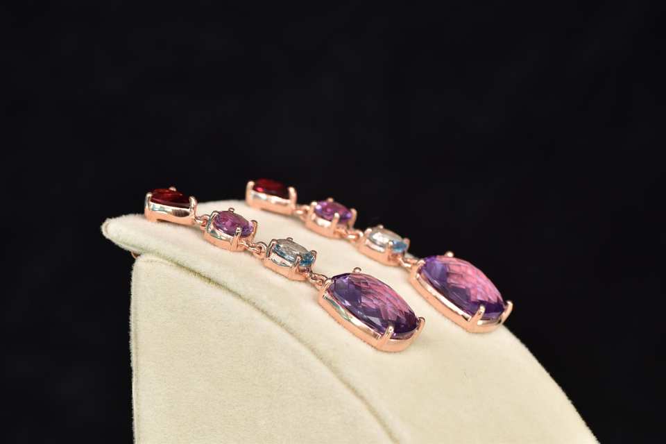 อัญมณีหลากสีที่กำหนดเอง925แข็งเงินสเตอร์ลิงเครื่องประดับต่างหูแบบห้อยดีไซน์เนอร์แบบขายส่ง