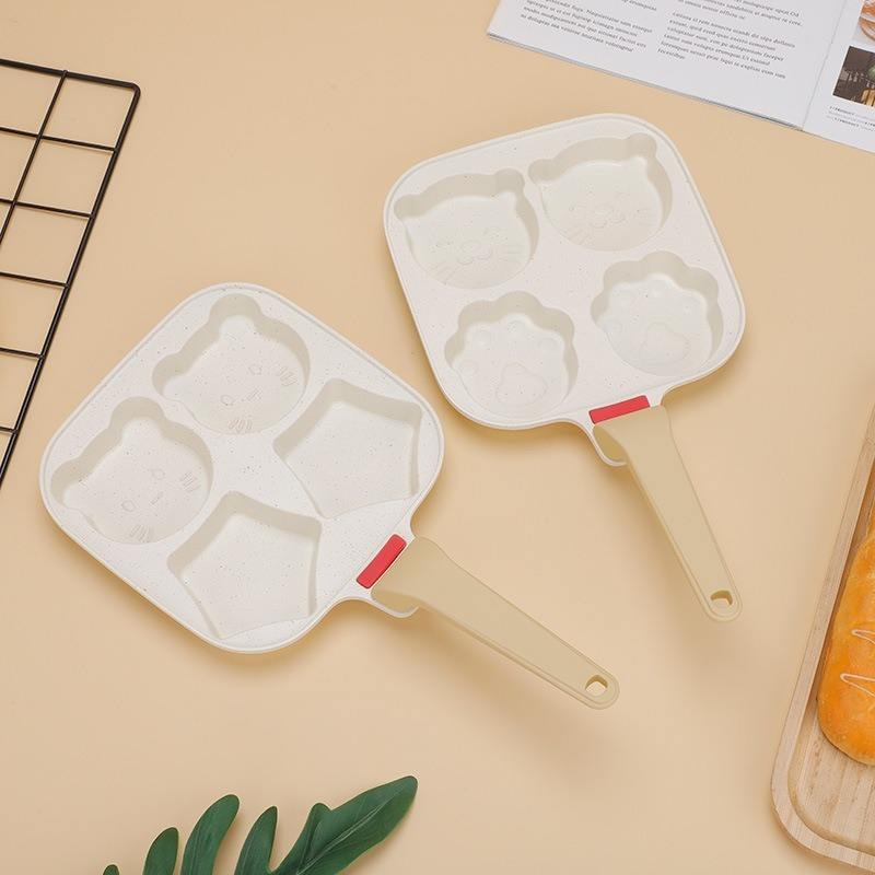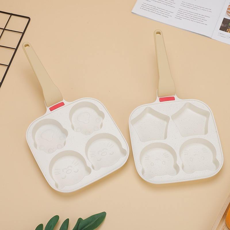 กระทะอาหารเช้าอเนกประสงค์แบบกำหนดเองได้ รูปทรงสี่เหลี่ยม ไม่ติดกระทะ มีสี่ช่องสำหรับไข่ สำหรับเด็ก ลายการ์ตูน กระทะหินไมแฟน