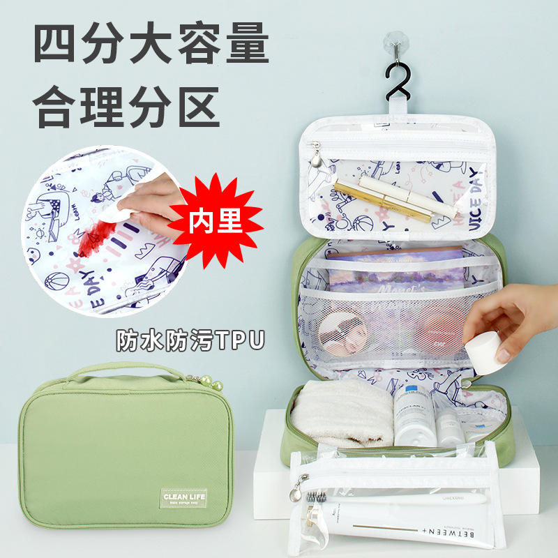 กระเป๋าใส่เครื่องสำอางอเนกประสงค์แบบกำหนดเองได้ รูปทรงสี่เหลี่ยมผืนผ้า แบบมีตะขอ แยกส่วนเปียกและแห้ง สำหรับจัดเก็บเครื่องสำอาง กระเป๋าเดินทางกันน้ำ