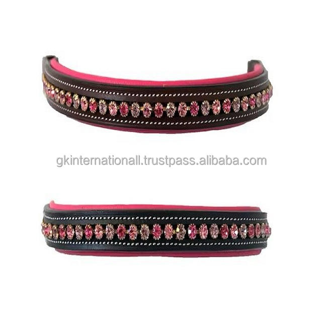 คริสตัลหลากสีที่กําหนดเองตกแต่งเมก้าบิลลิ่งฝังช่องว่างเปล่าแถบคิ้วหนังม้าสีดําหรือสีน้ําตาลฮาวาน่า