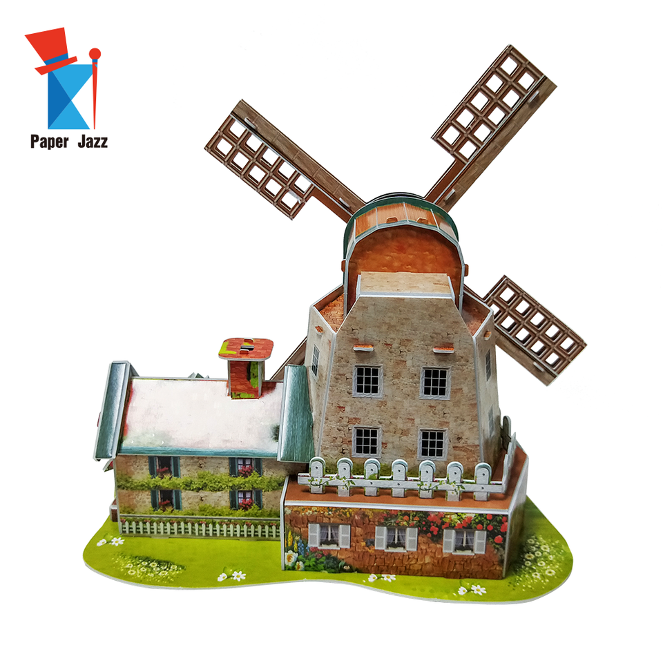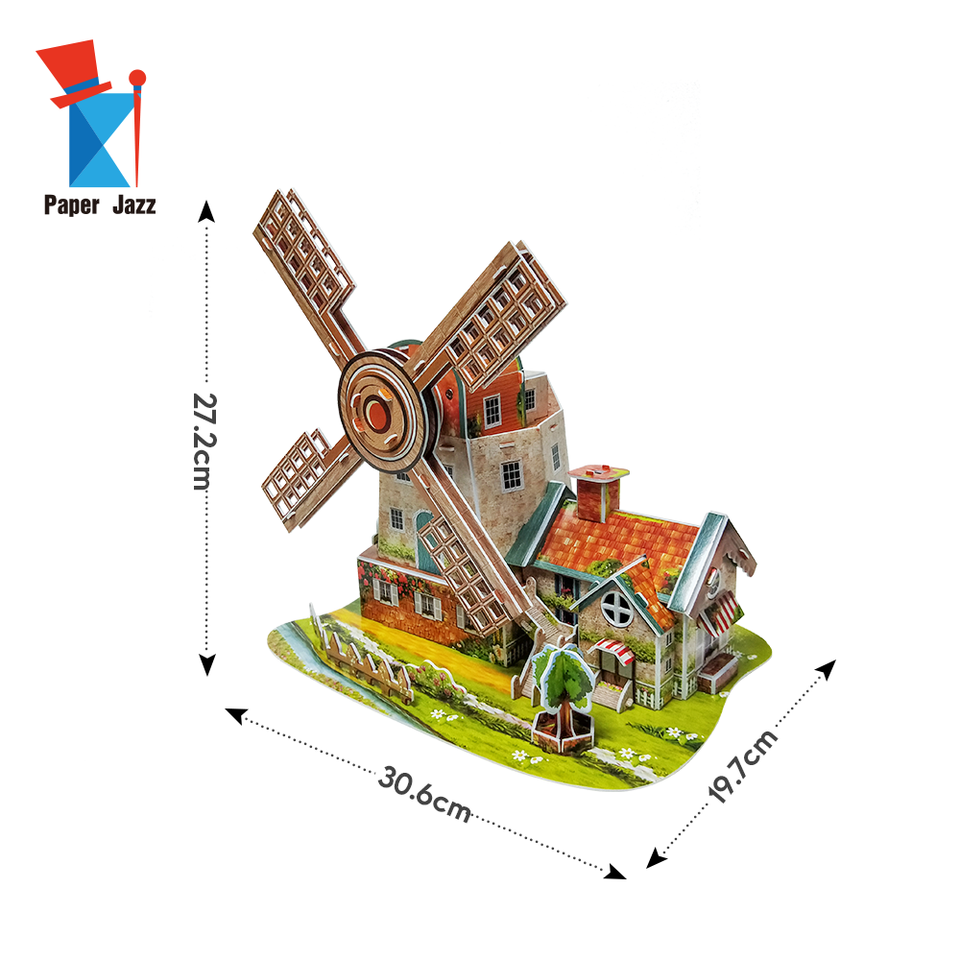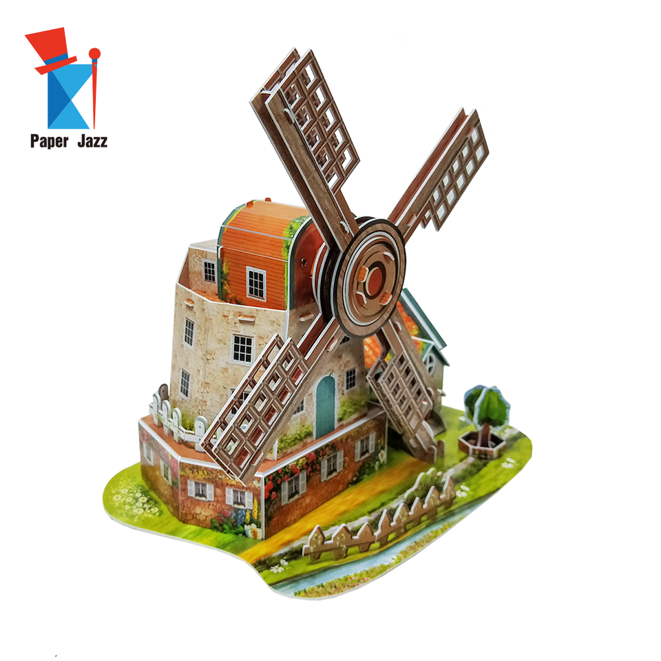 กล่องดนตรีที่กำหนดเองกระดาษโมเสคของเล่นเด็กในบ้านกังหันลมดัตช์