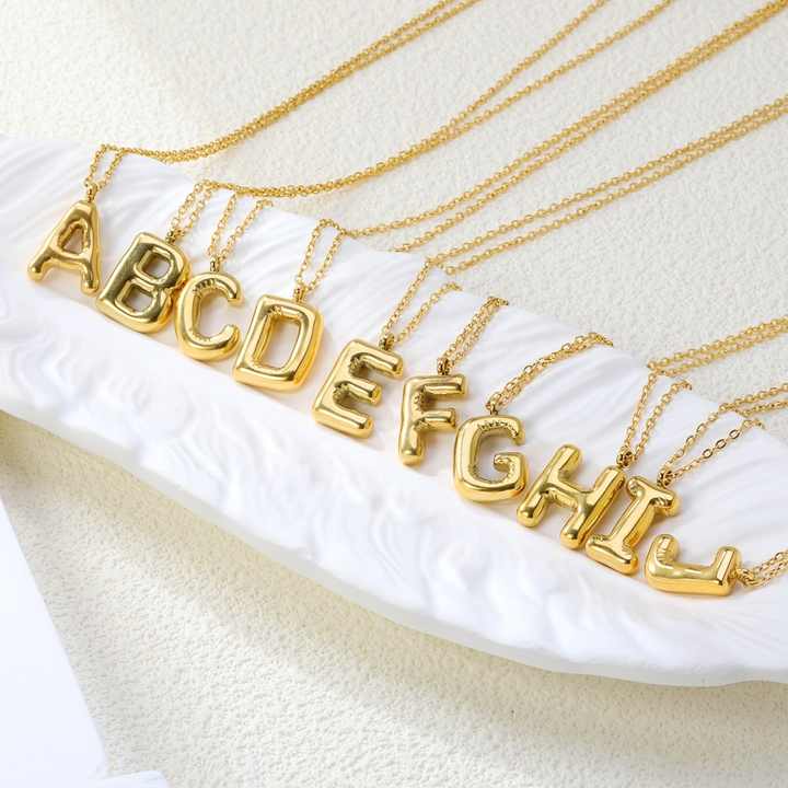 สร้อยคอชื่อสั่งทำพิเศษ สร้อยสแตนเลส 316 ชุบทองคำ ประดับจี้กันน้ำ ตัวอักษรแบบฟองสบู่
