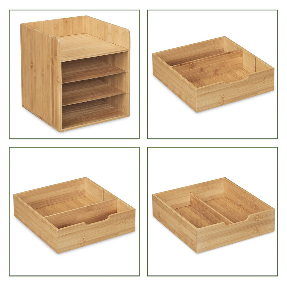 กล่องเก็บของอเนกประสงค์แบบหลายชั้นทำจากไม้ไผ่ธรรมชาติสำหรับจัดระเบียบสิ่งของบนโต๊ะทำงาน พร้อมลิ้นชัก