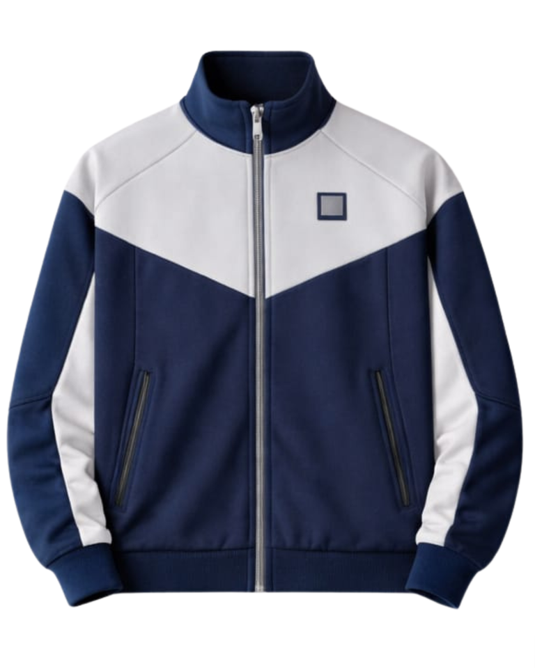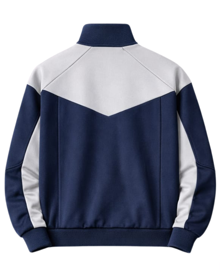 ชุดวอร์มกีฬาผู้ชายสีน้ำเงินกรมท่า-เทา แบบสั่งทำพิเศษ เสื้อแจ็คเก็ตซิปเต็มตัว กางเกงจ็อกเกอร์ ชุดลำลองสำหรับออกกำลังกาย ผู้ผลิตเสื้อผ้าแบบกำหนดเอง OEM
