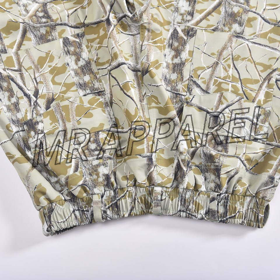 กางเกงกันหิมะลายพรางมีหลายสีพร้อมเข็มขัดรัดเอวระบายสายรัดข้อมือด้านล่างและกันน้ำเพื่อความอบอุ่นสำหรับเล่นสกี
