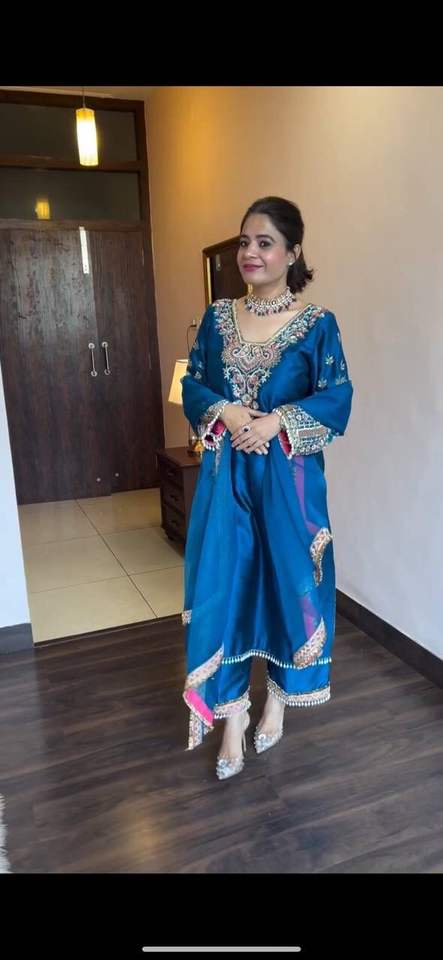 ชื่อผลิตภัณฑ์:ชุดผ้าไหมเย็บปักด้านบนและกางเกง vichitra พร้อม dupatta
