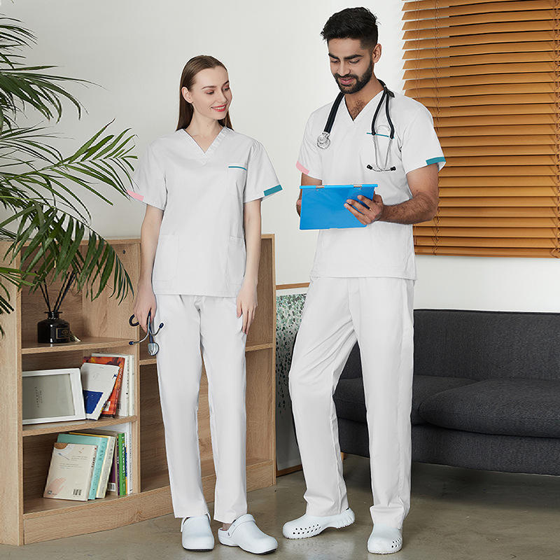 เครื่องแบบพยาบาลคอวีสำหรับทุกเพศเครื่องแบบโรงพยาบาลผ้าสแปนเด็กซ์หลากสีเครื่องแบบแพทย์ออกแบบได้ตามต้องการ