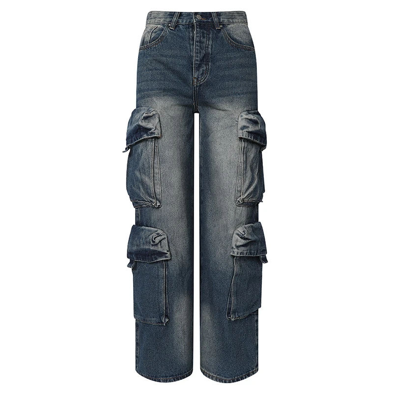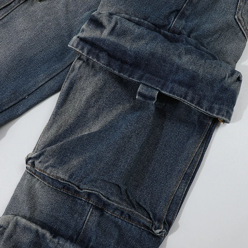 กางเกงยีนส์เดนิมทรงคาร์โก้แบบใหม่สไตล์ฮิปฮอปสตรีทแวร์ ลุคซันเฟด ล้างสี ทำสีซีดแบบดิสเทรส ดีไซน์สั่งทำได้ ราคาขายส่ง