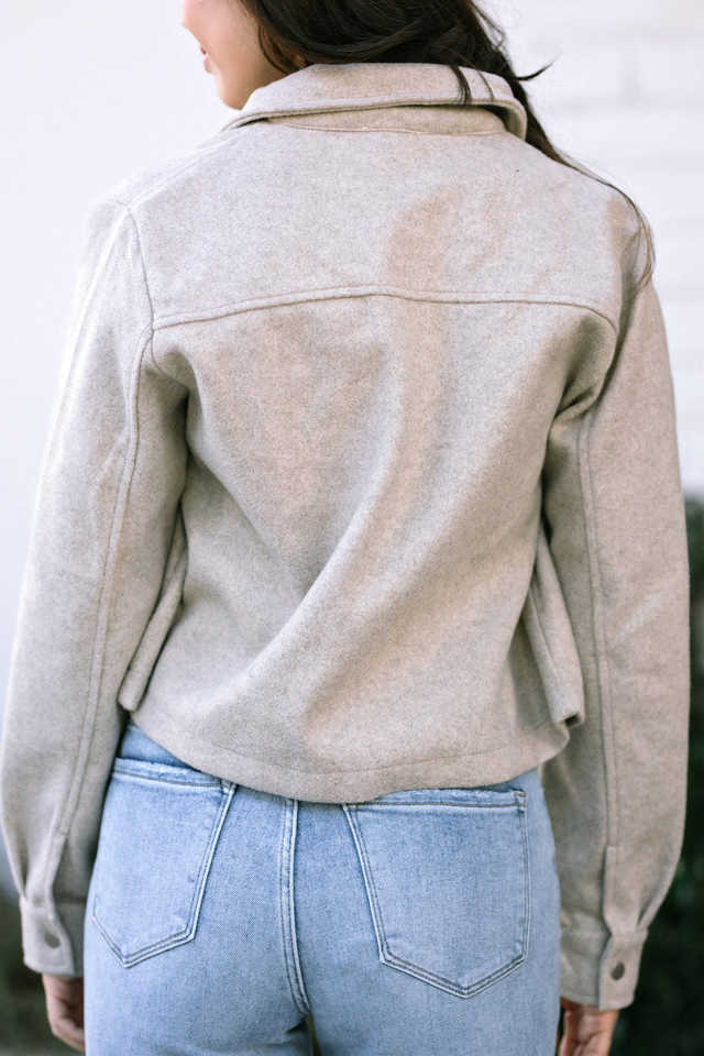 เสื้อโค้ทแจ็กเก็ตผู้หญิงแขนยาวผ้าสักหลาดปกสีเทาอ่อนมีกระเป๋ากระดุมแถวเดียวสำหรับแฟชั่นใหม่ออกแบบได้ตามต้องการ