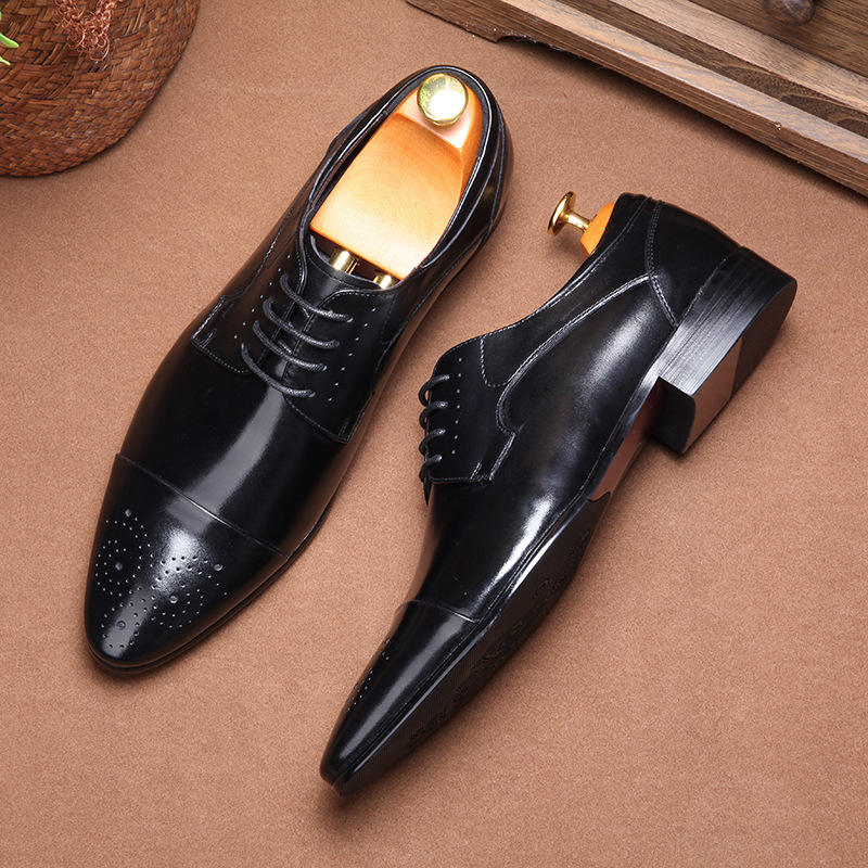 รองเท้าแต่งงานผู้ชายหนังแท้ทรงใหม่แบบสั่งทำพิเศษ พื้นหนา หัวมน สำหรับธุรกิจและงานทางการ