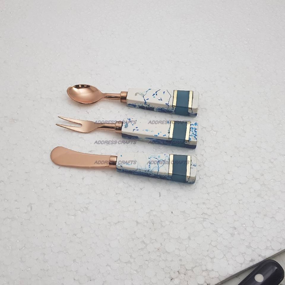 ชุดช้อนส้อมสแตนเลสพร้อมที่จับเรซินสำหรับงานแต่งงานและเครื่องครัวในบ้านดีไซน์ใหม่ตามสั่ง