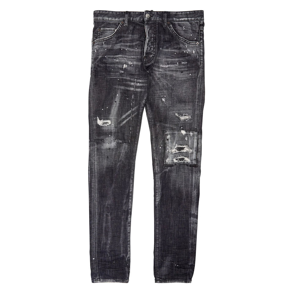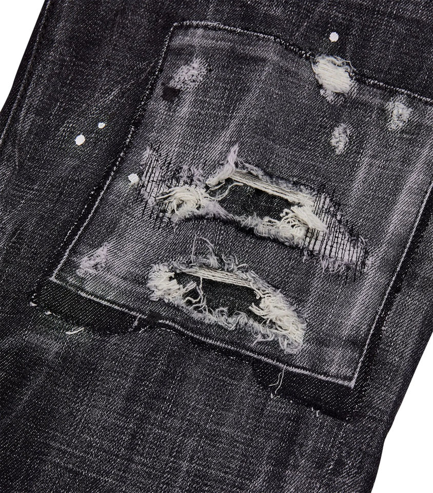 กางเกงยีนส์เดนิมผู้ชายแบบใหม่ล่าสุด ดีไซน์ทันสมัย ระบายอากาศได้ดี ตกแต่งด้วยผ้าปะสีเทาแบบซีดจาง สไตล์วินเทจ