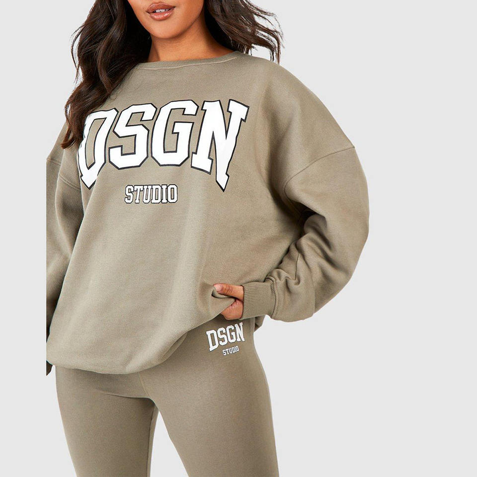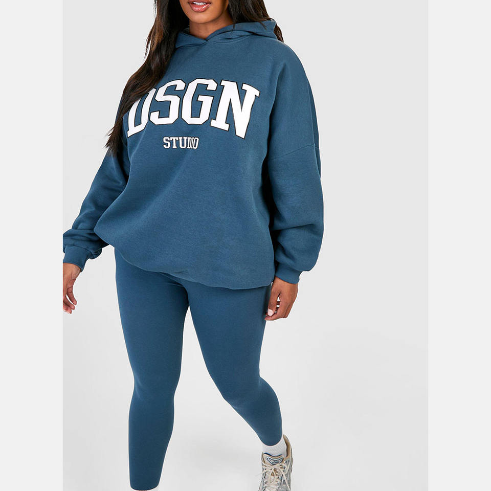 ชุดวอร์มออกกำลังกายของผู้หญิงแขนยาวแบบลำลองเสื้อครอปแบบมีฮู้ดและกางเกงขายาว