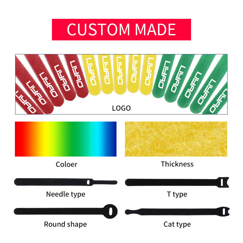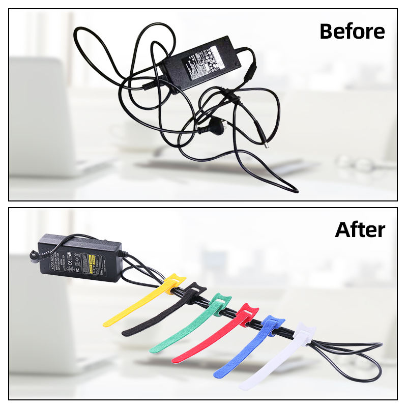 สายรัดไนลอนแบบปรับแต่งได้สายรัดแบบมีตะขอและห่วงใช้ซ้ำได้สำหรับจัดการลวด