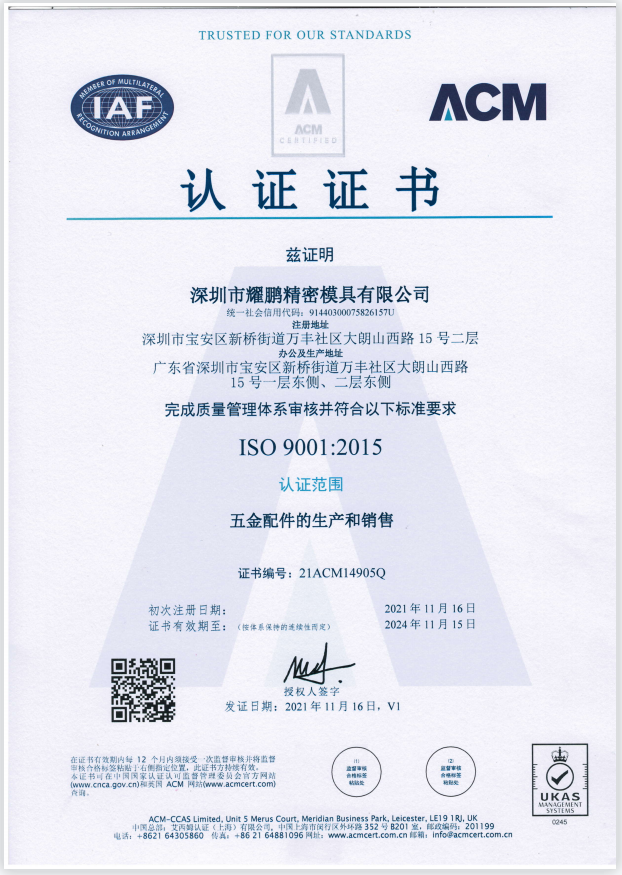 Certification:ISO9001:2015