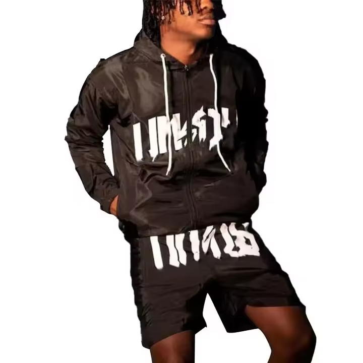 ชุดเสื้อมีฮู้ดกันลมและชุดสั้นชุดเสื้อแจ็คเก็ตไนลอนแนวสตรีทแวร์ผลิตจากผู้ผลิตที่ดี