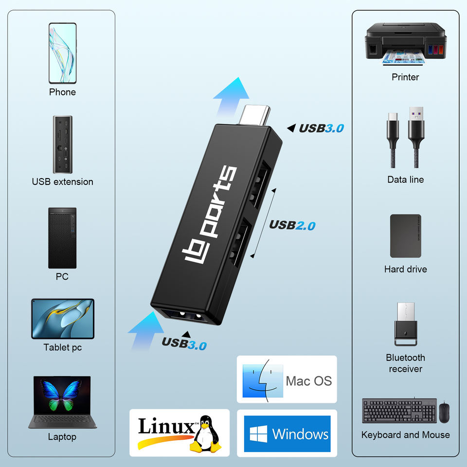 ที่กำหนดเอง OEM USB HUB 3.0 5Gbps การส่งข้อมูลมินิ3พอร์ต Usb Docking Station Splitter สำหรับพีซีแล็ปท็อป