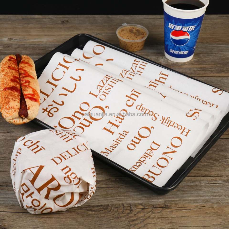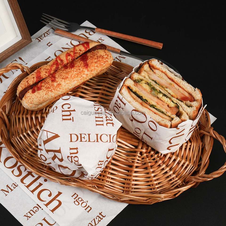 กระดาษรองอบเคลือบ PE แบบกำหนดเอง เป็นมิตรกับสิ่งแวดล้อม สำหรับบรรจุภัณฑ์แฮมเบอร์เกอร์ แซนวิช เค้ก ขนมปัง น้ำตาล ตามสั่ง