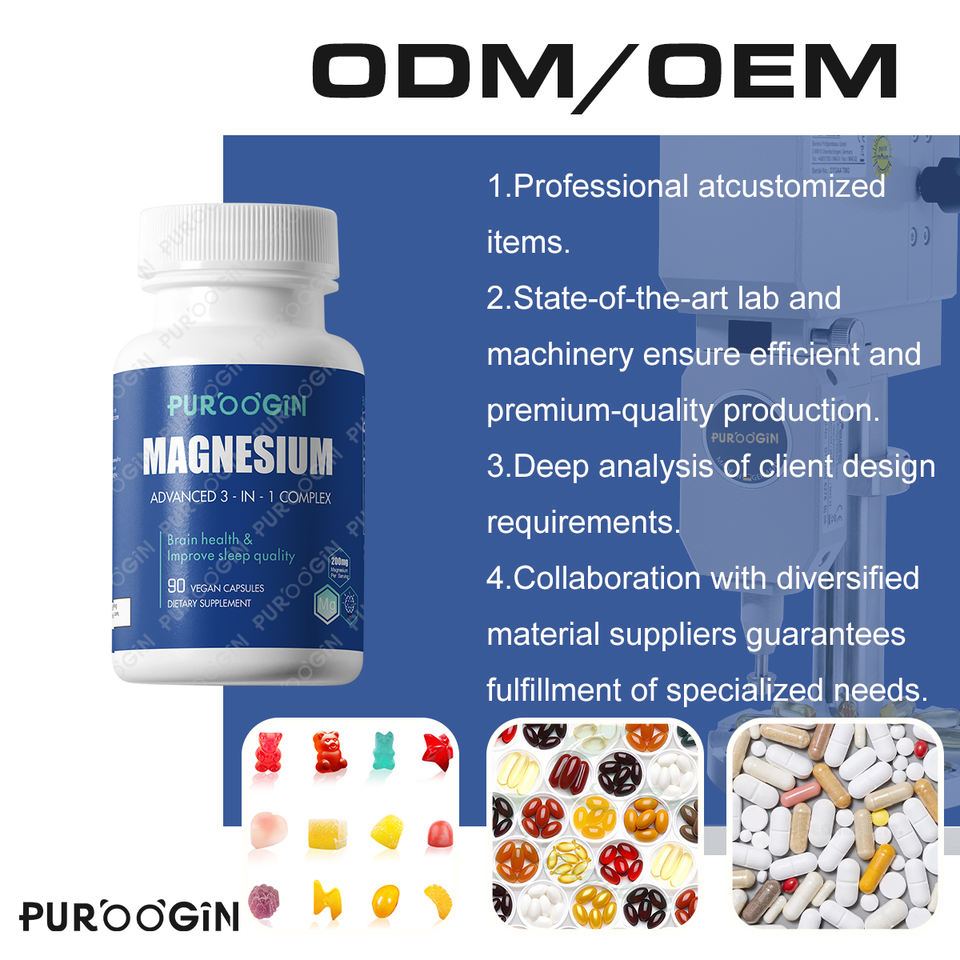 Customized Organic 200mg Magnesium Complex Vitamin Supplement for Adults Brain Health Calm Support 90 Capsules Pregnant Women