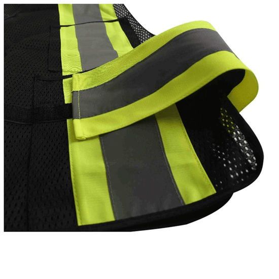 เสื้อกั๊กสะท้อนแสงสีเขียวเสื้อกั๊กนิรภัยกลางแจ้งปรับแต่งได้