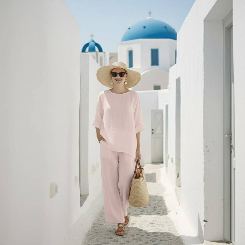 ชุดผ้าลินิน2ชิ้นสำหรับผู้หญิงโอเวอร์ไซส์ออกแบบได้ตามต้องการเป็นมิตรต่อสิ่งแวดล้อม