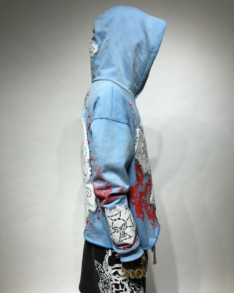 เสื้อฮู้ดซักกรดสำหรับผู้ชายเสื้อสเวตเชิ้ตวินเทจแนวสตรีทพร้อมเทคนิคการปักลายสำหรับฤดูใบไม้ผลิ
