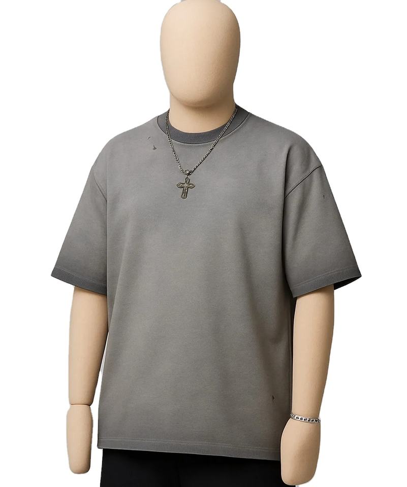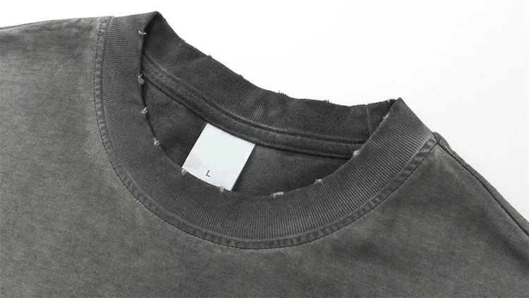 เสื้อยืดโอเวอร์ไซส์ผู้ชายสไตล์เรโทรแบบวินเทจ ตกแต่งขอบดิบ สีตัดกัน ผ้าฝ้าย 100% เสื้อยืดเปล่า