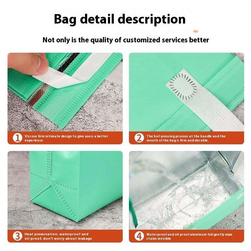 ถุงเก็บความร้อนแบบใช้แล้วทิ้งสำหรับอาหารกลางวัน ทำจากผ้า PP ไม่ถักทอ ปิดผนึกด้วยอัลตราโซนิก สำหรับใส่แฮมเบอร์เกอร์ ขนมปัง เค้ก รีไซเคิลได้