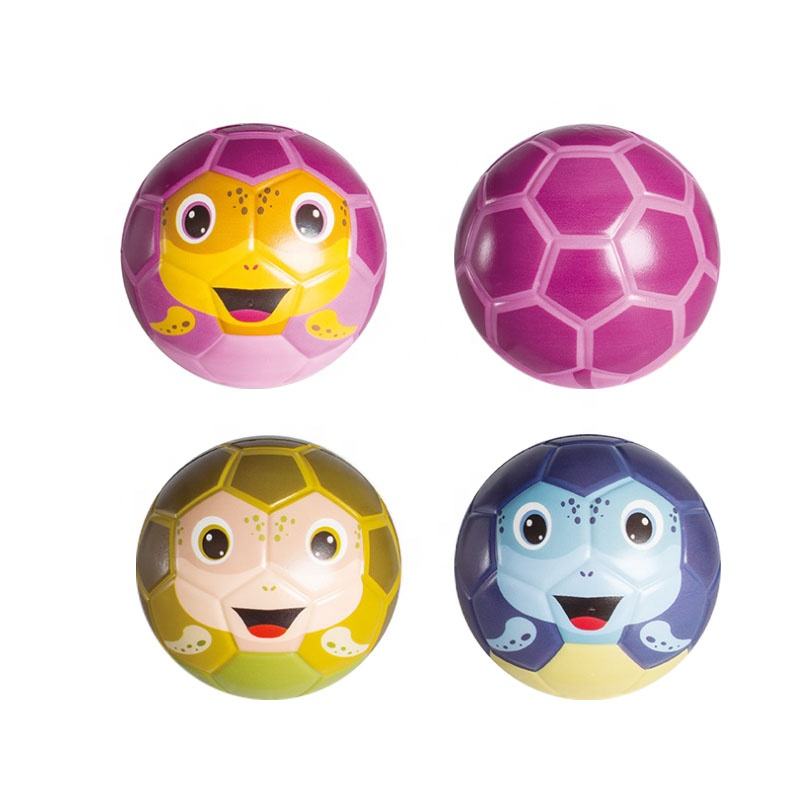 ลูกบอลโฟม PU แบบกําหนดเองการพิมพ์แบบนุ่มบีบของเล่นฟุตบอลสําหรับเด็กต่อต้านความเครียดตีกลับกีฬายืดหยุ่น